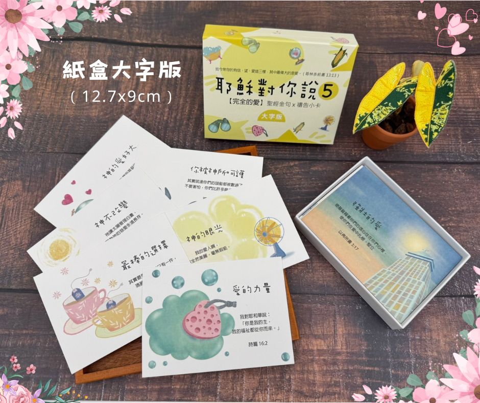 特色 40種不同圖文主題經文卡,可當書籤、送禮小卡,各種場合皆可隨機應用,隨時隨地提醒耶穌要對你我說的話。