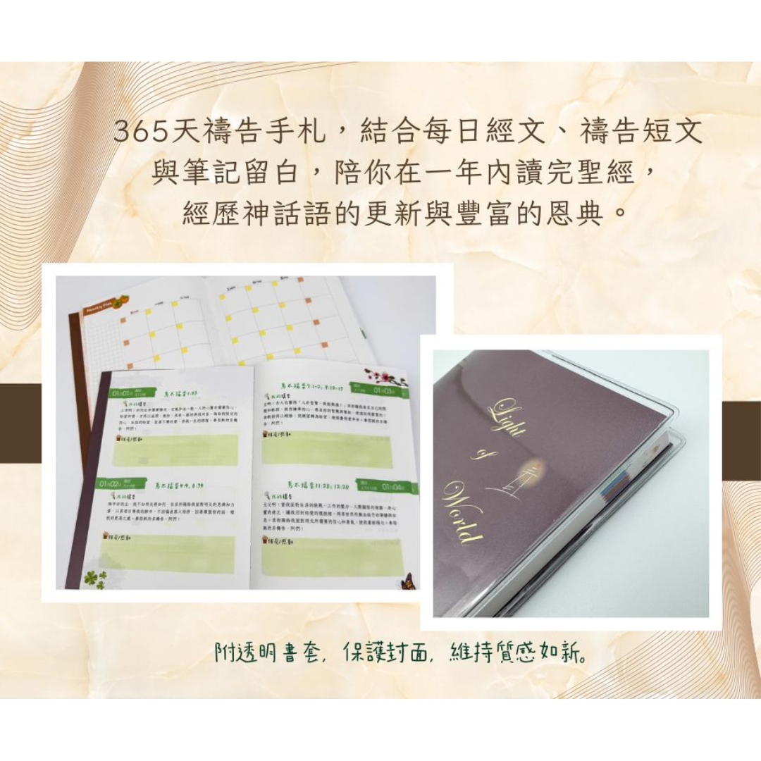 這本365天全彩禱告手札,結合每日經文、禱告短文與筆記留白,陪你在一年内讀完聖經,經歷神話語的更新與豐富的恩典。無年份設計,隨時都能開啟屬於你的靈修時光,幫助你在忙碌中也能安靜心靈,與神保持連線,重新得力。