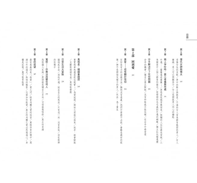 相愛是為了不必去愛/你這麼軟弱/伴侶投射出你不想要的人/伴侶是你的照妖鏡/伴侶是你不能忍受的陰影/墮落天使/我也變得和我老公一樣無情!/惡婆婆是最親密的戰友/用愛融化冰山