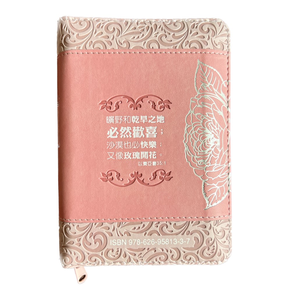 (玫瑰粉/銀)皮面拉鍊_3系列聖經和合本