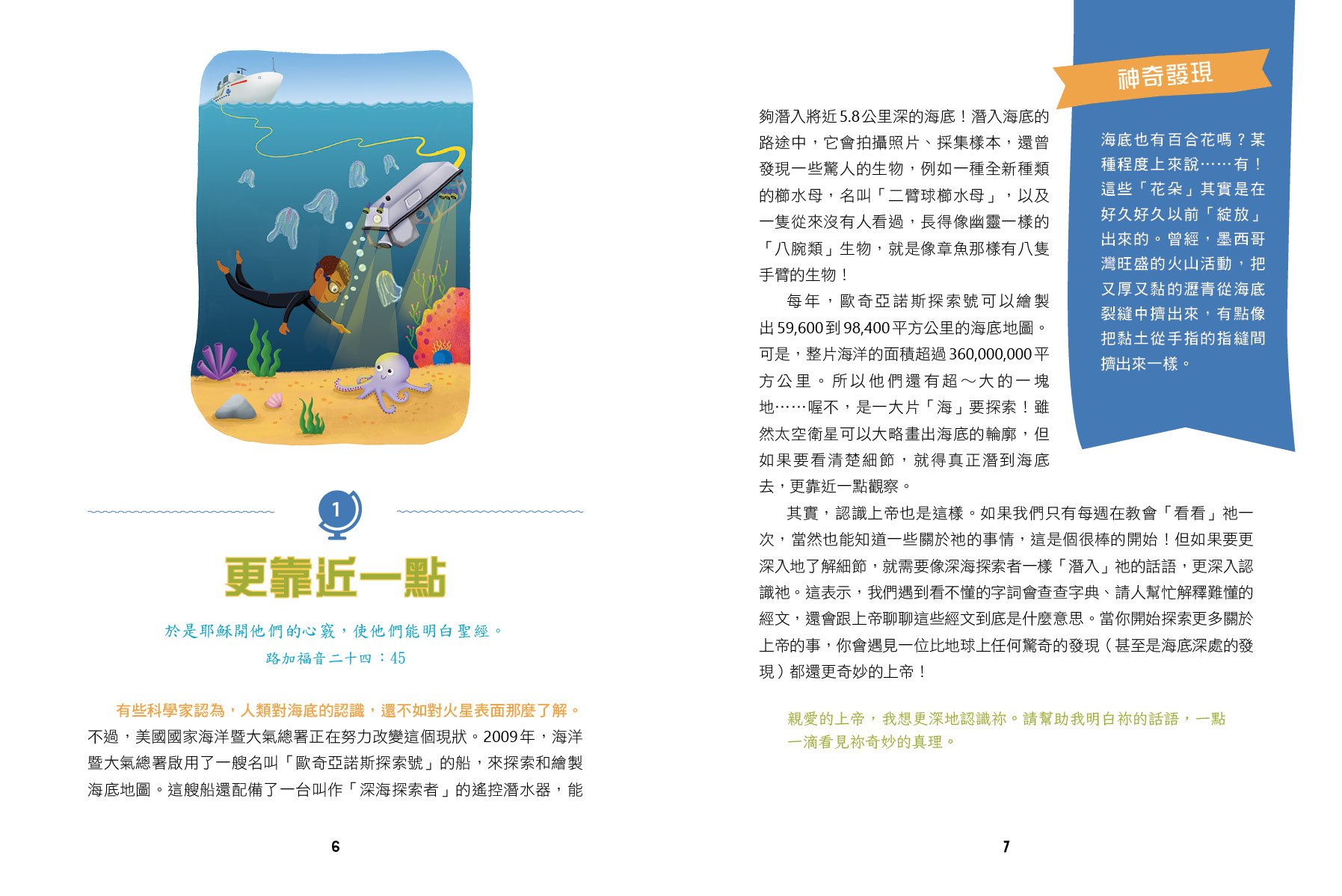 《聖經》告訴我們:「諸天述說神的榮耀,穹蒼傳揚祂的作為。」本書結合科學的奇妙發現,佐以真實圖片和精美插畫,深入淺出地介紹世上萬象,讓我們不禁對造物主發出由衷的讚嘆!